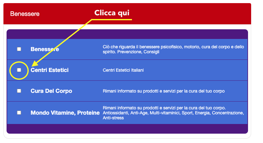 - 2 - Seleziona la casella: [Centri Estetici Centri Estetici Italiani]